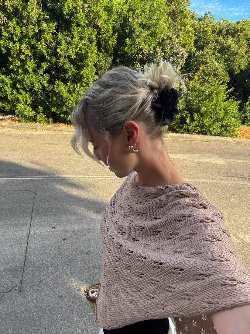 The Bloomlet Poncho is worked flat in a light and airy eyelet pattern. The eyelets are created using yarn overs and knit two together. It’s an easy rhythm to get into once you get started. When the desired length is reached, the poncho is seamed along one side. The cotton yarn makes it cool and comfortable - perfect to throw over a summer dress on breezy evenings. A simple, summery project with an elegant feel.