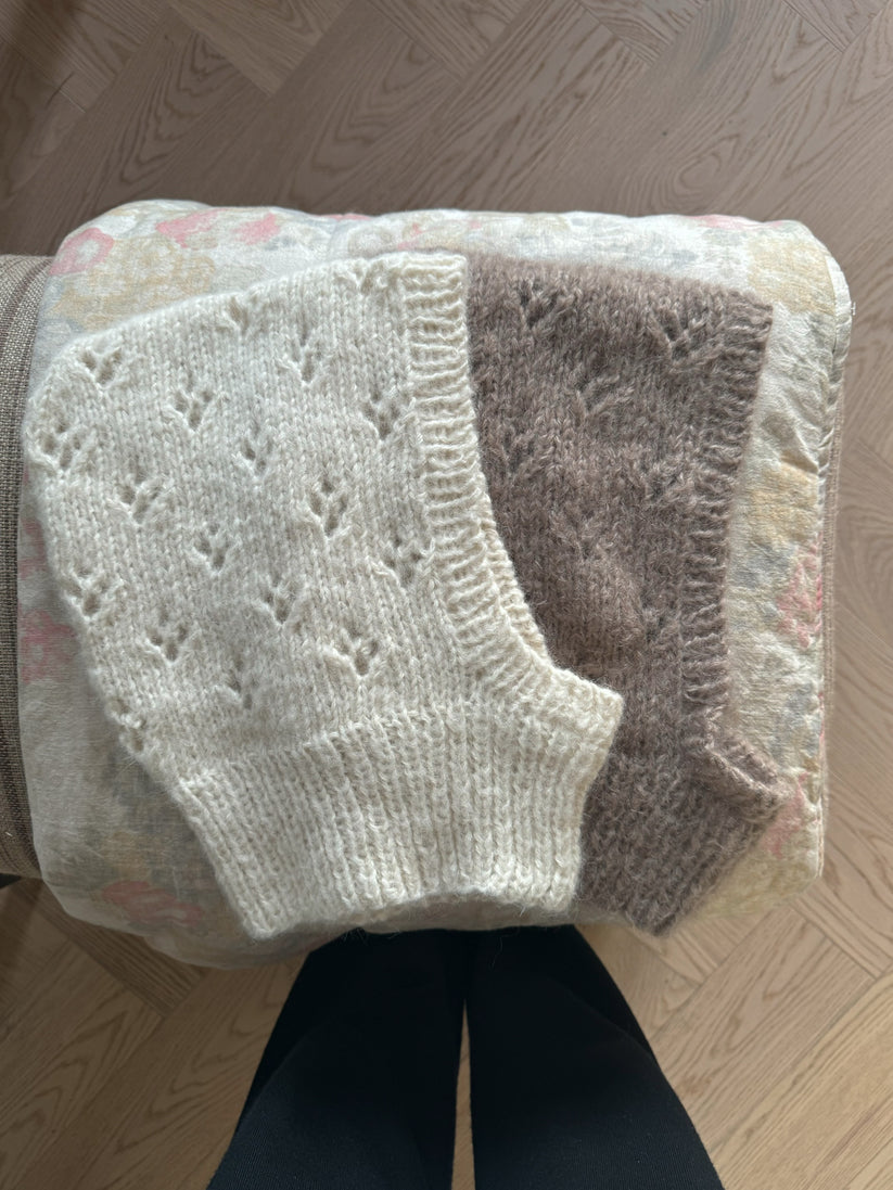 Brown: Thick Mohair from Rauma yarn(030) (100g) + Plum from Rauma yarn(030) (25g) + Alpakka supplementary yarn from Sandnes yarn(3161) (50g).